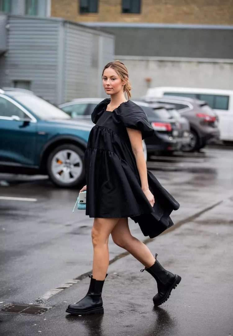 If you’re in doubt, opt for a black short dress and your trusty black booties. You can easily dress it up with tights, a scarf, or layered necklaces.