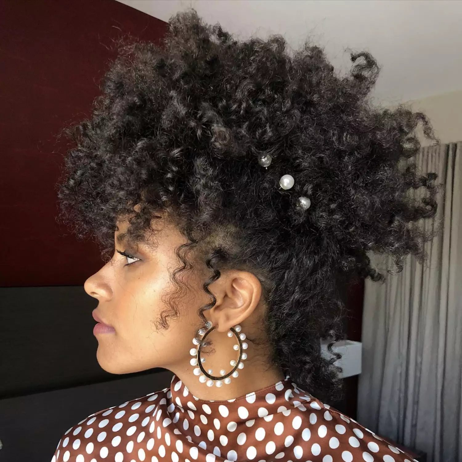 Zazie Beetz gives her gorgeous curls a Renaissance makeover by adding pearl pins to match the earrings she wears. Hair accessories can take a style to the next step.