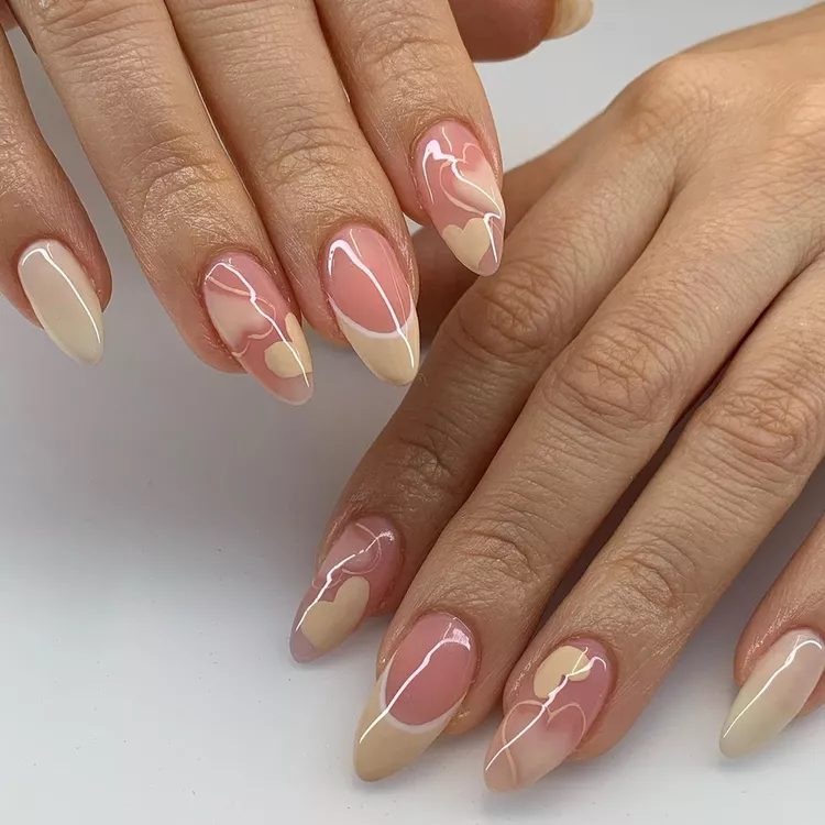 Try a sandy, glossy nude instead of the traditional white French tip. Haye designed this neutral airbrush mani to celebrate Valentine’s Day, but you can wear it all year round.