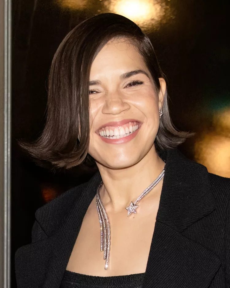 Hurtado says that to recreate America Ferrera’s stylish flipped out bob, start by creating a side part. Then, using a round-bristled brush, blow dry your hair straight to add volume. The stylist says to use a flat iron on your ends, and straighten it further. After your hair has been straightened and smoothed, use a curling wand or flat iron to curl small sections outwards. This will give you the signature flip-out ends. Hairspray will help the style stay in place. Tuck one side behind your ear.