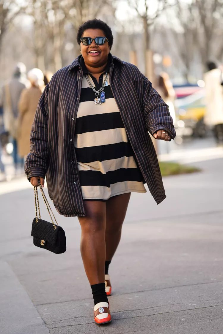 Stripes can be a great sartorial guide for loafers and dresses, especially if your style is to layer. When it comes to the ‘fit’, we think that more is better. However, creating some contrast is important. Avoid creating an optical illusion by choosing striped separates that are different widths and directions.