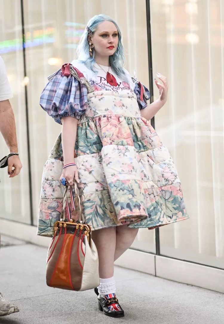 Wear a dress with puff sleeves in a print that contrasts the loafers to create a statement. Finish off the look with a bag that incorporates the colors of the dress and loafers.