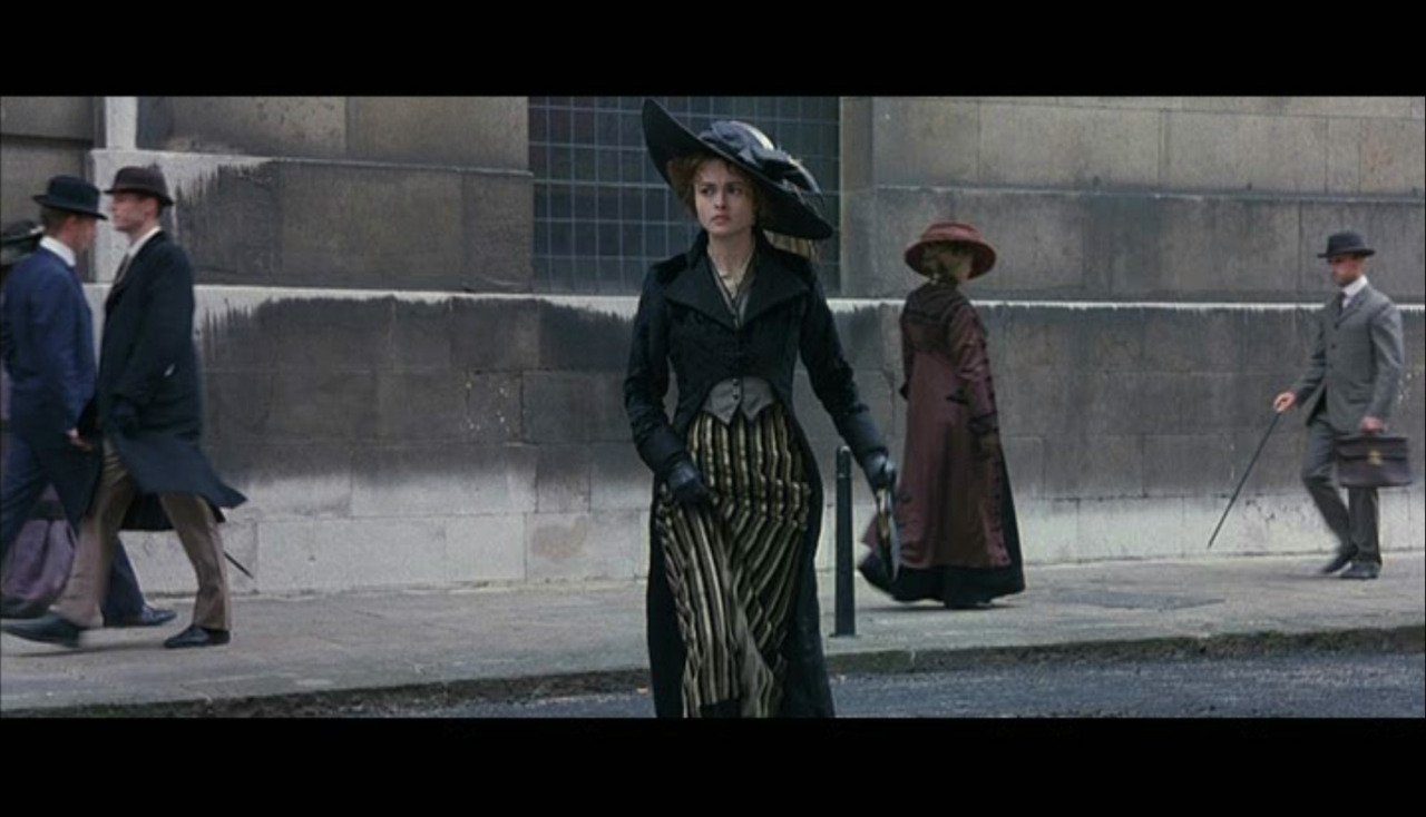 Helena Bonham-Carter played the role of Kate, a young woman who lives under extreme supervision of her wealthy aunt. Although her wealth isn’t really hers but under the mercy of her aunt, she still dresses up the way wealthy young women do in the past. In one scene she wore a dress made from luxurious soft chiffon that flows all the way to the drapes. She also paired it with black velvet elbow-length gloves; a very popular accessory for sophisticated women in the 1910s.