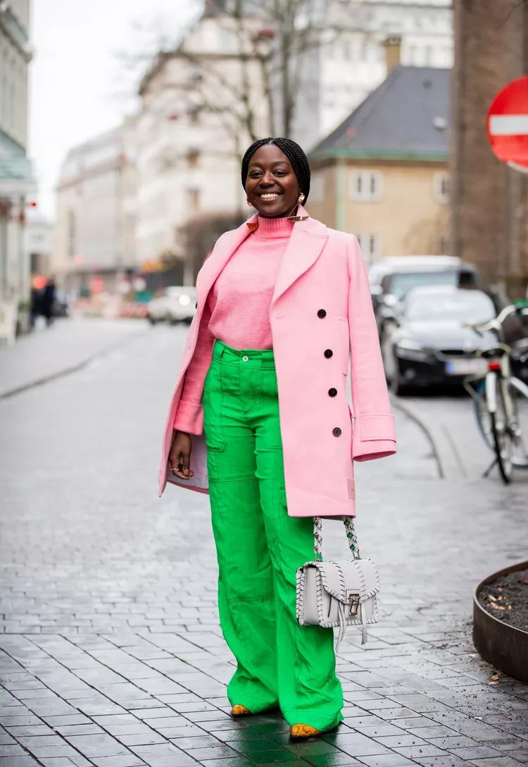 The classic combination of green and pink. The pink gives off floral hints, and the green provides a perfect balance. Wear a top in pink with bottoms in green to make it look like a flower.