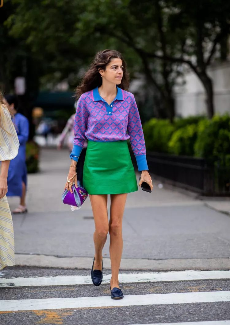 This color combination is a real winner. We love how the green skirt complements the purple and blue in the top of this outfit.