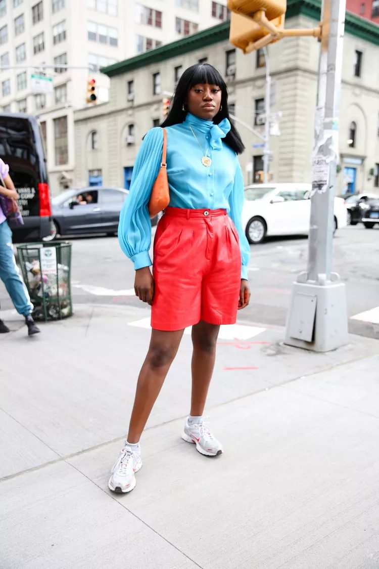 Red is a warm colour, so pairing it with blue for a color-block look is a good idea. You could pair navy with red but brighter blues are better.