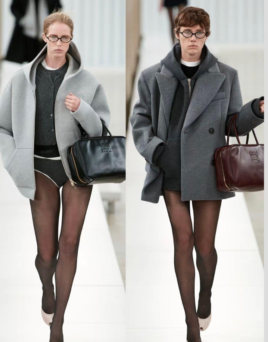 The combination of outerwear and lingerie has long been a staple on fashion runways. Fashion-savvy women won’t be surprised by this trend; they often embrace it with calm confidence. Layering with sheer stockings over this look can create a strikingly sensual effect.