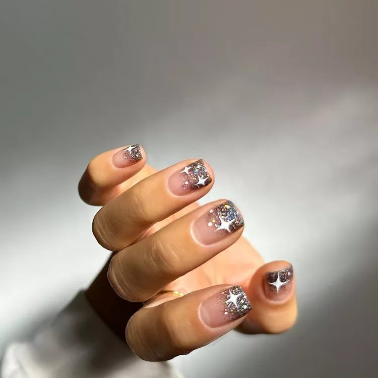 Gold Star Glitter Ombre Nails