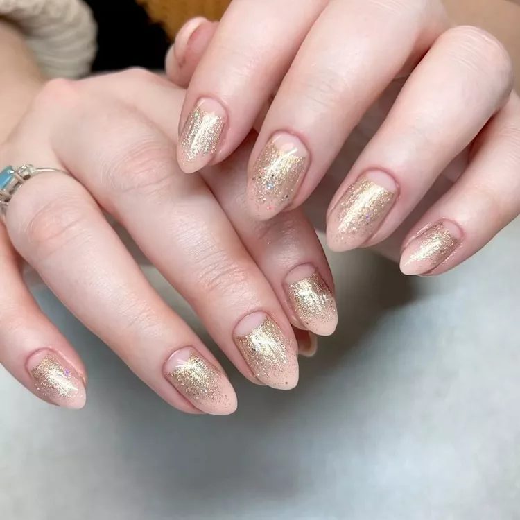 Gold Glitter Ombre Neutral Nails