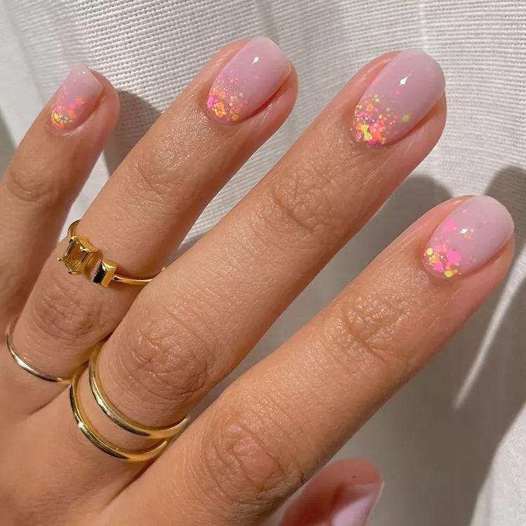 Pink Confetti Ombre Glitter Nails