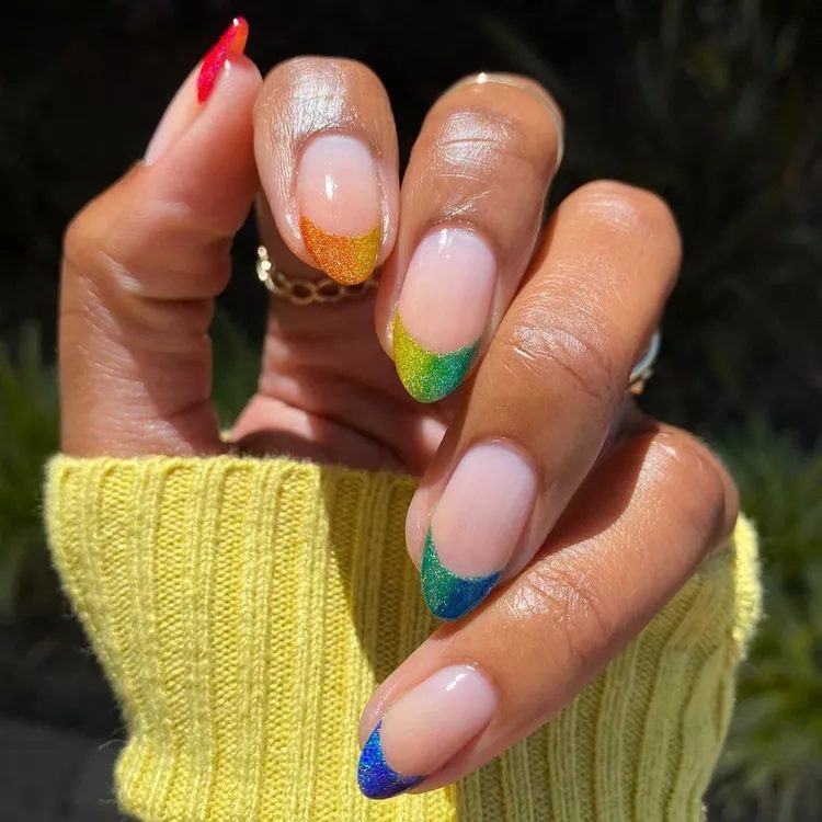 Rainbow Ombre Glitter French Manicure