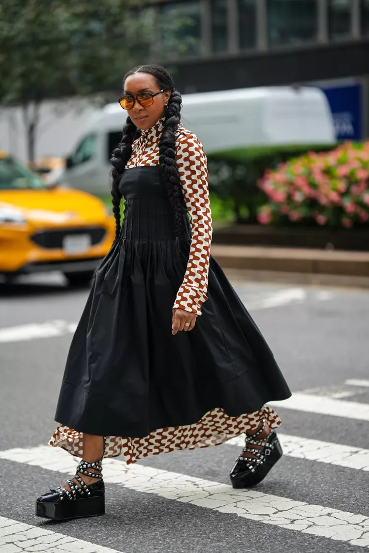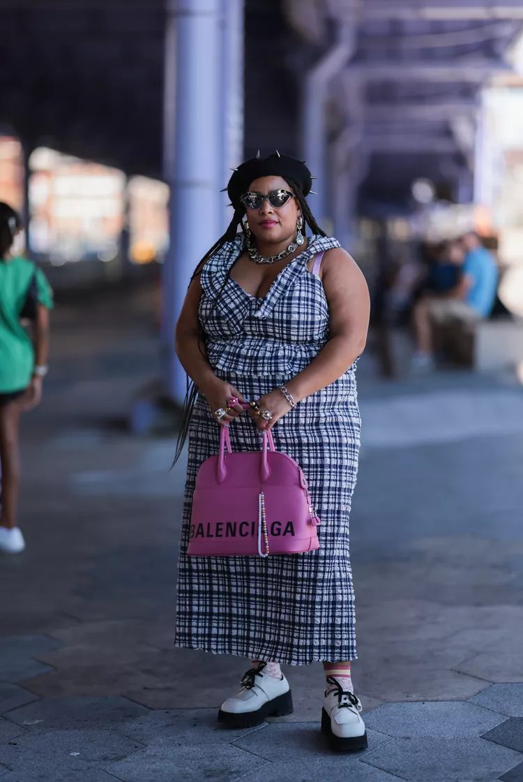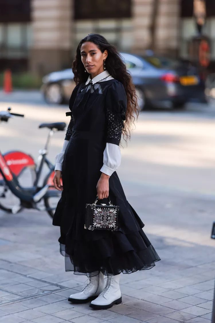 Wear a gingham maxidress or plaid dress with stacked loafers for a look that has a bit more of a punk feel. The structured lines of a vintage doctor’s bag can be seen in a purse or tote. This will keep you on the fashionista end of the spectrum.