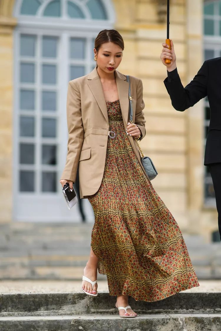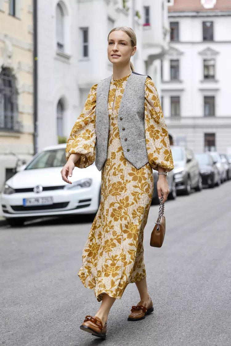 Vests are in vogue, and you can add the romantic vibe of a vest that is slightly oversized to your favorite maxidress. Vests in neutral colors or with subtle patterns look great on dresses with loud prints.