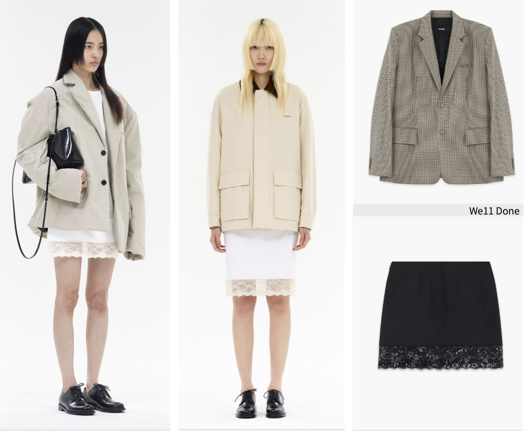We11 Done disrupts traditional dress codes through material mixing and innovative tailoring, crafting garments that are equally at home in casual settings and formal environments. By integrating formal elements like suit necks and tailored fits into casual designs, or vice versa by infusing soft fabrics and loose fits into formal wear, the brand offers novel visual and wearing experiences. This fusion not only enhances versatility but also celebrates the beauty of contradiction.